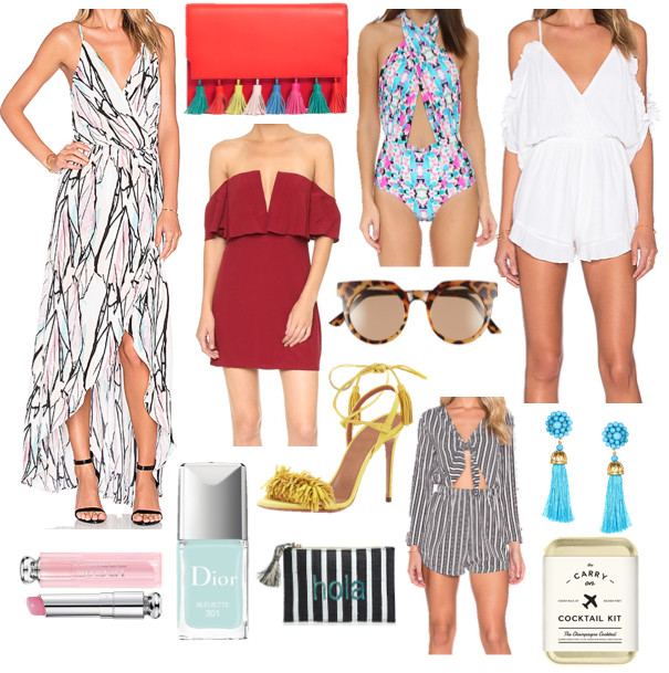 Anyone else in need of a getaway? This cold weather has me craving blue skies, warm temps, sand between my toes, and a tropical drink in hand. Although, we don’t quite know where we are heading on our honeymoon (we are working on it!!) we know it will be somewhere beachy. Today I am virtually packing some dreamy items I would love to have in my carry on come May. Are you heading somewhere fun soon? Maybe an upcoming Spring Break trip? Hopefully some of these pieces will brighten up your bag!